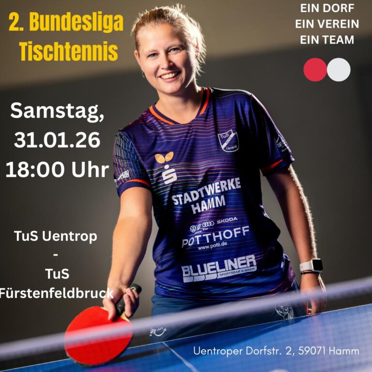 von den G-Jugend bis zu den Alten Herren Tanzen schon in jungen Jahren Miet mich für deine Veranstaltung verfolge unsere Damen in der 2.Bundesliga Aktuelles Fussball Senioren Gambino geht in die 4.Saison Weiterlesen » 3. Februar 2026 Tischtennis Der Tabellenführer eine Nummer zu groß Weiterlesen » 31. Januar 2026 Allgemein Leichte Änderungen im Hauptvorstand Weiterlesen » 31. Januar 2026 Fussball Senioren Gambino und Rickert verlängern Weiterlesen » 31. Januar 2026 Tischtennis Start in die Rückrunde Weiterlesen » 31. Januar 2026 Allgemein Generalversammlung Weiterlesen » 30. Januar 2026