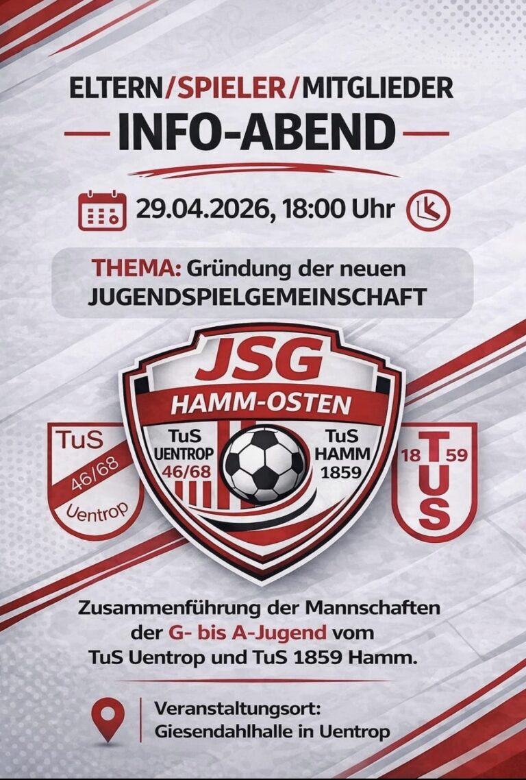Mehr als nur ein Verein. Dein Zuhause in Uentrop. Entdecke Fußball, Tischtennis, Hobby Horsing und mehr beim TuS 46/68 Team TuSjetzt mitwirken & begeistern26. - 28. Juni 2026 "Im Giesendahl"Hier anmeldentanzen schon in jungen Jahrenmehr Informationenverfolge unsere Damen in der 2.Bundesligamehr InformationenTuS Aktiv - Sport & KursangeboteBreitensport & Fitness NRW-Landesturnfest! Sei dabei und Unterstütze uns - Hier entlang für mehr Informationen TuS Aktiv - Sport & Kusangebote Aktuelles Allgemein Die Fußballschule von Ingo Anderbrügge kommt in den Giesendahl Weiterlesen » 25. April 2026 Jugendfussball Informationsabend zur JSG Hamm-Osten Weiterlesen » 25. April 2026 Allgemein Ostern kann wieder gesucht werden! Weiterlesen » 24. März 2026 Fussball Senioren Seniorenmannschaften mit schwierigen Aufgaben Weiterlesen » 14. März 2026 Tischtennis Heimspiel am Samstag Weiterlesen » 14. März 2026 Allgemein Wetter standgehalten Weiterlesen » 14. März 2026 Unsere Partner Sponsoren-Familie beitreten? Hier entlang